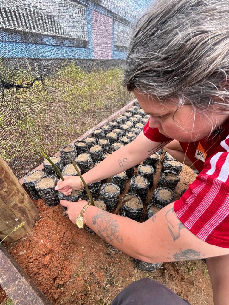 A origem dessa transformação é local e científica. As mudas não surgiram ao acaso; foram coletadas como propágulos (sementes nativas) nas próprias praias da região, respeitando a genética do território. Sob o olhar atento da SALVAMAR, esses “embriões de floresta” recebem cuidados diários. “Estamos acompanhando o dia a dia do crescimento, fazendo a limpeza do local e regando cada um deles”, explicou-nos Sebastião.