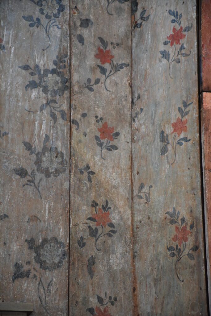 A igreja, dedicada a Nossa Senhora da Assunção recebeu, progressivamente, representações a ela alusivas em conjuntos de afrescos e pinturas sobre madeira, construindo um discurso que deu a conhecer aos povos originários da aldeia uma linguagem europeia, própria da arte religiosa que é exemplo da interpretação de um referente sagrado com as rosas. [Fig. 4 e 5] Policromia e formas são aqui elementos do encontro das duas culturas presentes na aldeia, um ponto de conexão do imaginário e das representações indígenas e europeias.