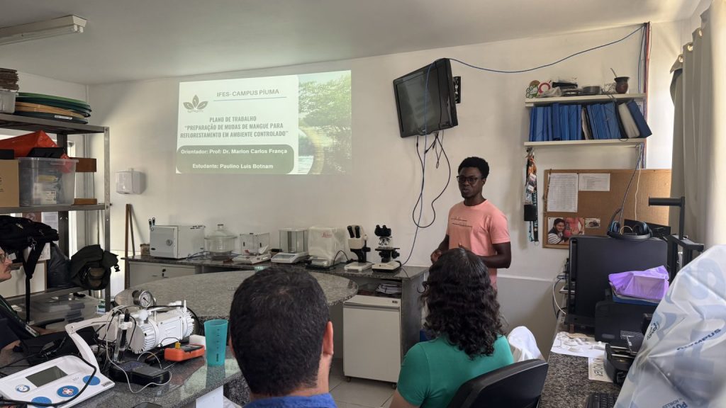 Vindo da Guiné-Bissau, na África Ocidental, para estudar no Brasil, o estudante Paulino Luis Botan, atualmente no 2º semestre de Engenharia de Pesca no IFES – Campus Piúma, trouxe consigo uma vivência comum a muitos: a de ver o manguezal apenas como um cenário distante. Mesmo vindo de um país rico nesse ecossistema, o contato físico e a compreensão científica só aconteceram em solo capixaba.
